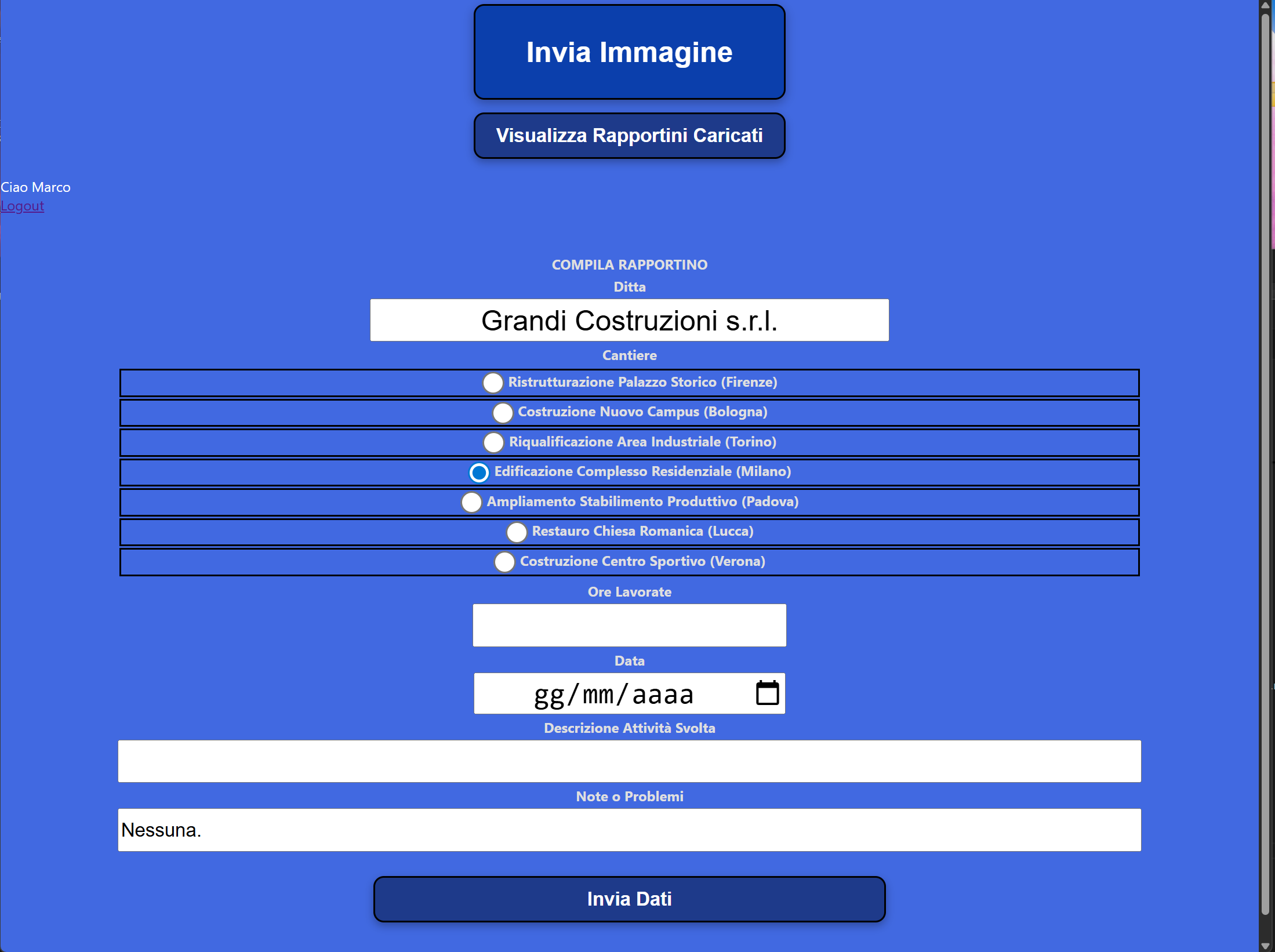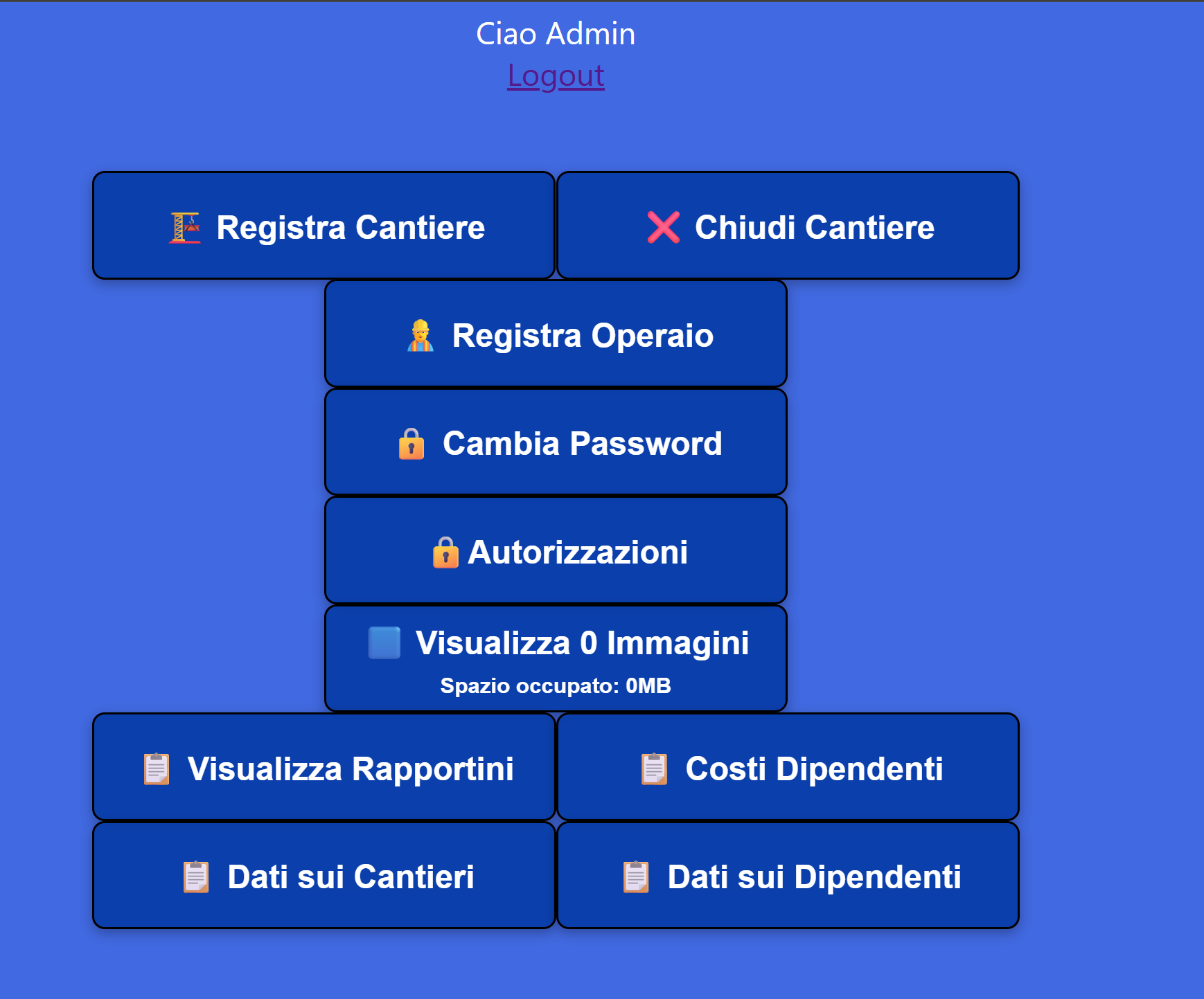 I dipendenti possono caricare delle immagini sia dei cantieri che di ricevute o scontrini per i rimborsi. E' possibile scaricare l'immagine che verrà automaticamente rimossa dal database in modo da non occupare spazio inutilmente