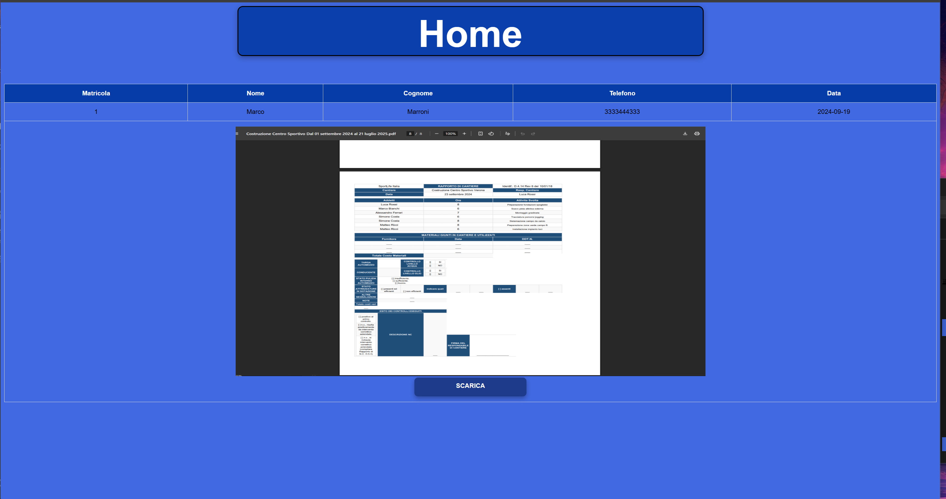 E' possibile generare il file PDF automaticamente selezionando un cantiere o una data. Il PDF generato è conforme alla normativa ISO e sarà compilato con i dati dei rapportini compilati dagli operai. Basterà stamparlo per avere la giusta documentazione pronta per il controllo qualità.